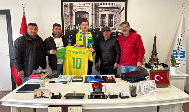 Balıkesir Süper Amatör Ligde şampiyon olarak Bölgesel Amatör Lig'e yükselen 1966 Edremitspor'un taraftar grubu Genç Edrolular, Edremit Belediyesi Özel Kalem Müdürü Tayfun Canlı'yı ziyaret ederek verdiği destek için teşekkür etti.
