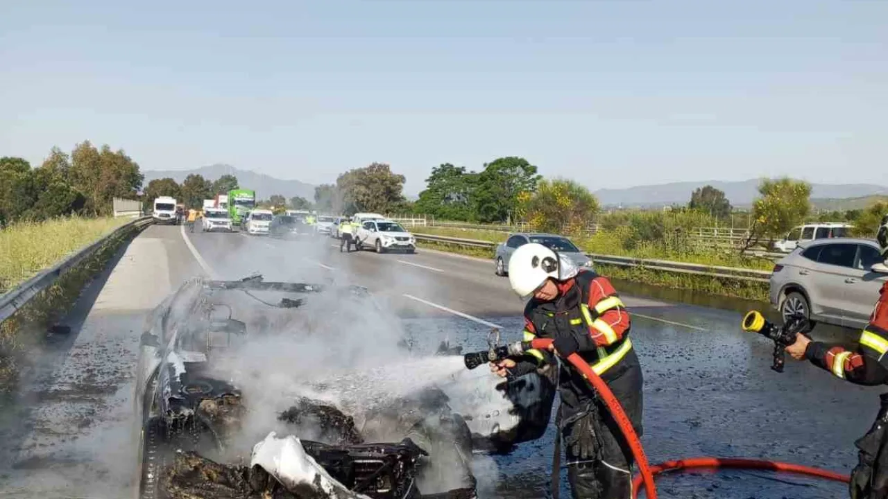 Yangın, Aydın İzmir otoyolu üzerinde meydana geldi. Edinilen bilgiye göre, Germencik Gişeleri mevkiinde otoyol üzerinde ilerleyen 09 SS 746 plakalı otomobilden bir anda alevler yükselmeye başladı. Araç sürücüsü aracını yol kenarına çekerek Acil Çağrı Merkezi’nden yardım istedi. Olay yerine gelen Aydın Büyükşehir Belediyesi itfaiye ekipleri sevk edildi. Olay yerine gelen ekipler otomobildeki yangına müdahale etti. İtfaiye ekipleri otomobildeki yangını söndürürken, araç kullanılmaz hale geldi.