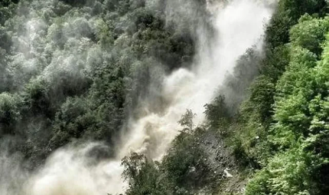 Giresun'un Doğankent ilçesinde her yıl sadece 15 gün görülebilen Hidroelektrik Santrali'nin su tahliyesi ile oluşan 150 metrelik yapay şelale görenleri mest ediyor.
