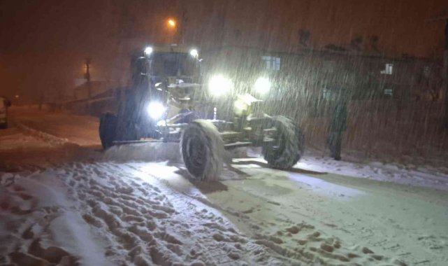 İlçe merkezinde başta ana yollar olmak üzere tüm mahallelerde çalışma yapan ekipler, tuzlama ve solüsyon uygulamalarına gece boyunca sürdürecek.