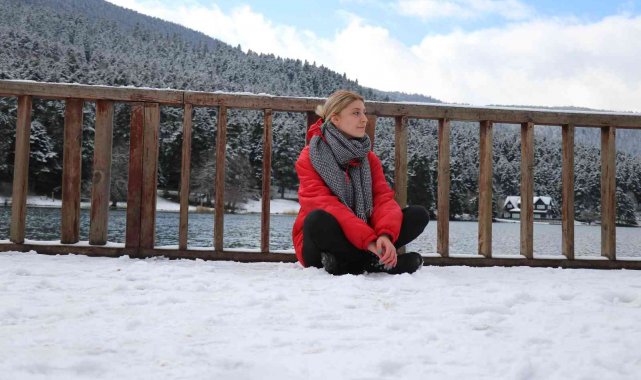 Bolu'nun gözde turizm merkezi Gölcük Tabiat Parkı'nda yeşil alanlar kar yağışıyla birlikte beyaz örtüyle kaplandı.