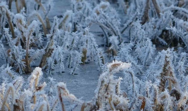 Göle ilçesinde kırağı nedeniyle beyaza bürünen ağaç ve bitkiler ise güzel görüntüler oluşturdu.
