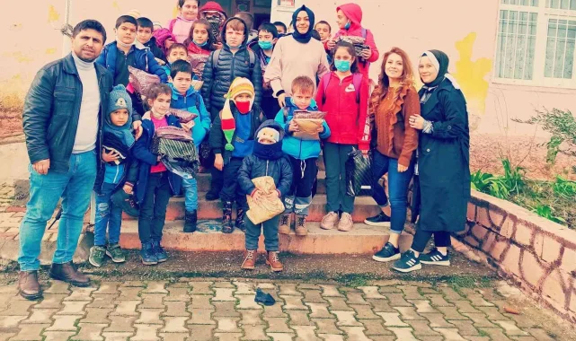 Kahramanmaraş'ta bir grup gönüllü, kırsal kesimde yaşayan çocuklara bot, mont ve atkı-bere hediye etti.