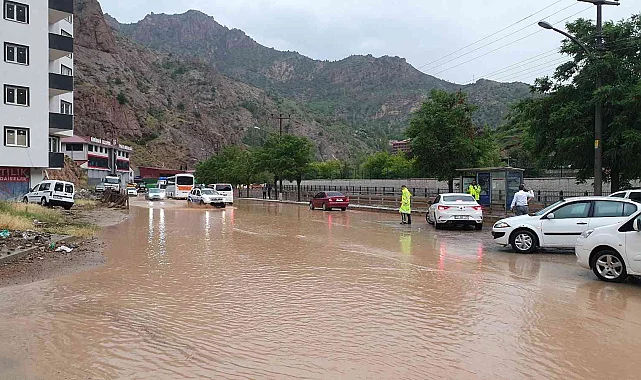 Gümüşhane'de birdenbire bastıran şiddetli yağmurun ardından caddeler göle, dik rampadaki yollar dereye döndü.