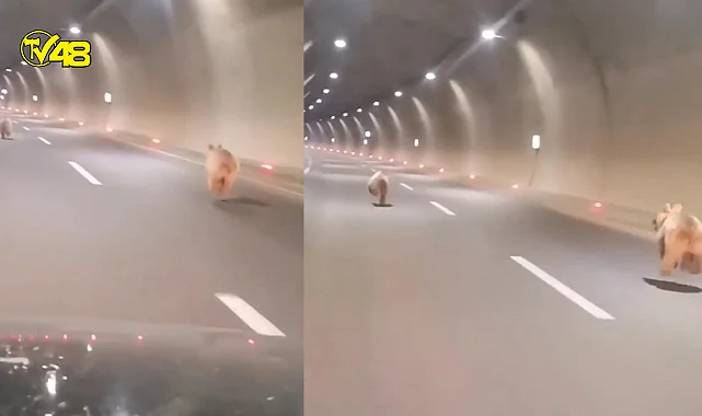 Geçtiğimiz günlerde Gümüşhane-Trabzon karayolunda kestirme olsun diye Mescitli Tünelini kullanan ayı bu sefer arkadaşıyla geldi. Tünel içerisinde görüntülenen 2 ayı tünelin sonuna ulaşmak için var güçleriyle koşarken o anlar tüneli kullanan bir araç sürücüsünün kamerasına yansıdı. Ayılara ‘deli oğlan’ diye seslenen sürücü videoda, “Ayılar tüneli bastı, bunlar yavru, annelerinizi nerede bıraktınız" diyerek ayıların arkasından yavaşça ilerledi.