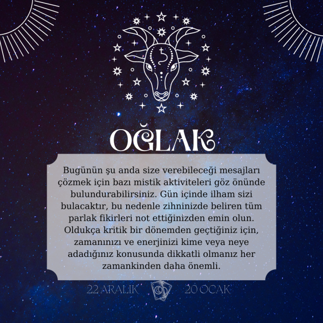 17 Aralık 2022 günlük burç yorumları her gün olduğu gibi bugünde araştırılıyor. Astrolojik açıdan sizi neler bekliyor? Koç, boğa, ikizler, yengeç, aslan, başak, terazi, akrep, yay, oğlak, kova, balık burçlarının günlük yorumları hakkında detaylar, burçların dikkat etmesi gereken konular ve merak edilenler haberimizde...