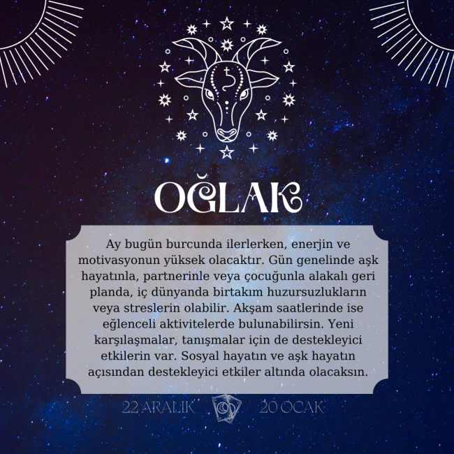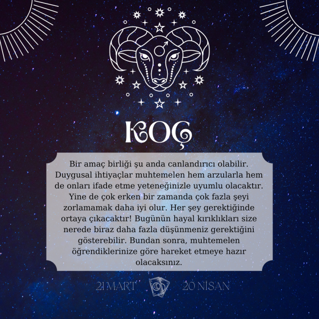 26 Kasım 2022 günlük burç yorumları her gün olduğu gibi bugünde araştırılıyor. Astrolojik açıdan sizi neler bekliyor? Koç, boğa, ikizler, yengeç, aslan, başak, terazi, akrep, yay, oğlak, kova, balık burçlarının günlük yorumları hakkında detaylar, burçların dikkat etmesi gereken konular ve merak edilenler haberimizde...