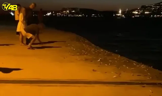 Olay 28 Temmuz Cuma günü saat 22:00 sularında gerçekleşti. Güvercinlik sahilinde yürüyüş yapan vatandaşlar, bir anda balıkların denizden karaya zıpladığını görünce, şaşkınlık ve merakla olayı kamera kaydına aldılar.