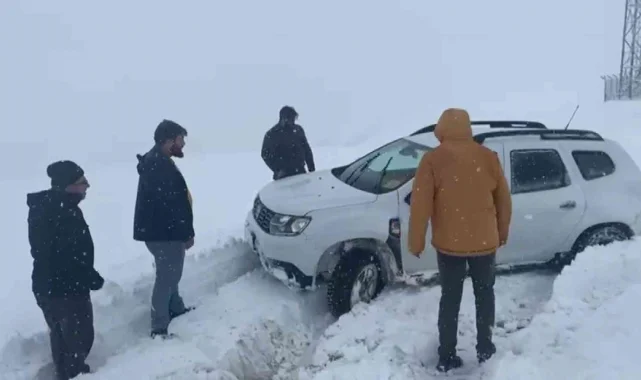 Habere giden gazeteciler karda mahsur kaldı