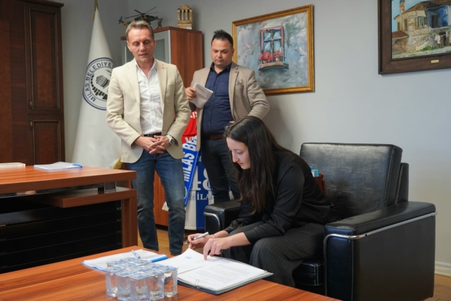 Milas Belediyesi Ana Hizmet Binası Başkanlık Makamı’nda gerçekleşen imza törenine Belediye Başkanı Muhammet Tokat, Oğuzhan Koral Mimarlık Hizmetleri Proje Bürosu yetkilisi Mimar Sinem Celen, Kültür ve Sosyal İşler Müdürü Bekir Güney ve KUDEB Birim Sorumlusu Dr. İ. Ernur Öztekin katıldı.