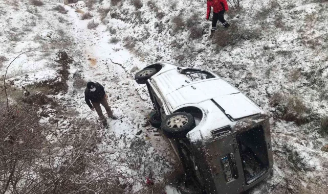 Çorum'un Sungurlu ilçesi'nde etkili olan kar yağışı trafik kazalarına neden oldu. Kontrolden çıkan hafif ticari araç köprüden uçtu. Kazada 2 kişi yaralandı.