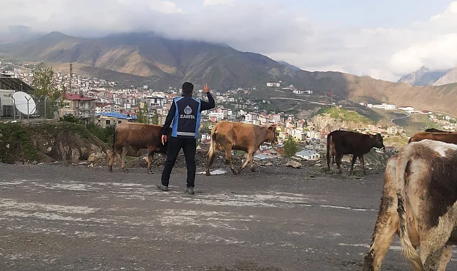 Hakkari Belediyesi Zabıta Müdürlüğü ekiplerinin kentteki başıboş büyükbaş hayvanlarla mücadele çalışması sürüyor.