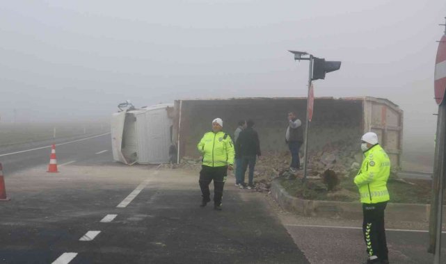 Edirne'de Halkalı-Kapıkule hızlı tren inşaatında çalışan hafriyat kamyonu yoğun sis sebebiyle devrilmesi sonucu 1 kişi yaralandı.