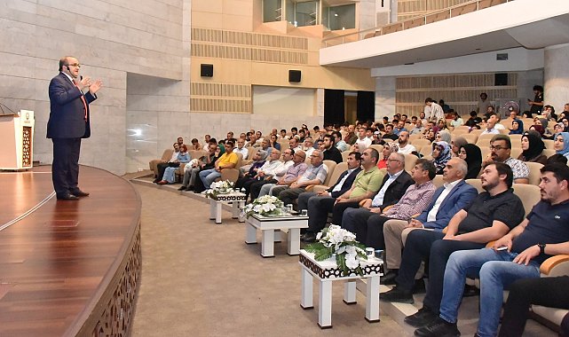 Karatay Belediye Başkanı Hasan Kılca'nın konuşmasının ardından konferansa geçildi. Sunumunda Kudüs'ün genel yapısına, geçmişten günümüze bölgede yaşanan siyasi ve sosyal olaylara değinen Prof. Dr. Nuh Arslantaş, "Kudüs, insanlığın başkentidir. 3 dinin merkezi Kudüs'te sükûnet varsa dünyada sükûnet vardır. Kudüs karışıksa dünya da karışıktır. Bu şehrin böyle bir özelliği var. Bu yönüyle diğer dinlerin de inanç kimliğini oluşturması sebebiyle Kudüs'ü dünya şehirleri arasında çok farklı bir yere koyuyoruz. Kudüs, özü itibariyle bir Arap kentidir. Yahudilerin iddia ettiği gibi bir Yahudi kenti değildir. Yahudi şehri iddiası tarihi bir temele dayanmamaktadır. Akademik camiada ve siyasi camiada etkin oldukları için bugün dünya kamuoyunda maalesef sanki Kudüs kendileri için kutsalmış gibi bir algı oluşturmaktadırlar. Oysaki Yahudiler için başta değil sonradan kutsallaşmış bir şehirdir. Kudüs aynı zamanda peygamber hatıralarıyla dolu, peygamber kokulu bir şehirdir. Kudüs'ün her sokağında peygamberlerin hatıralarına, İslam mirasına dair pek çok örnek bulunmaktadır. Yine İslamiyet'te 3 mescit kutsaldır. Mekke, Medine ve Kudüs. Kabe'den sonra inşa edilen ikinci mescit, ilk kıbledir Kudüs. Bu yönüyle de dünyanın barışı Kudüs'ten geçer. Özellikle vurgulamak istediğim diğer bir konu ise Kudüs bir Türk şehridir. Osmanlı ve Sultan Abdülhamit Han Kudüs'e büyük önem vermiştir ve bugün hala ayakta olan yapılarda bunlar net bir şekilde görülmektedir. Kudüs, Osmanlı'nın önemli padişahlarından Yavuz Sultan Selim, Kanuni Sultan Süleyman, Sultan Abdülhamit Han'a onur bahşetmiştir. Yüzyıllar boyunca Türkler Kudüs'te çok ciddi izler bırakmıştır ve tarih boyunca Kudüs'ün Şiileşmesini önlemiştir. Bu nedenle Müslümanların ilk kıblesi olan Kudüs'ün ve Mescid-i Aksa'nın bizim için önemini ve değerini bilerek korumak da yine bizlere düşmektedir" şeklinde konuştu.