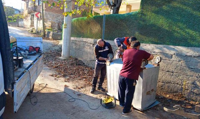 Körfez Belediyesi ekipleri, özellikle kırsal alanda bulunan ve zamanla hasar gören çöp konteynerlerini yerinde tamir ediyor.