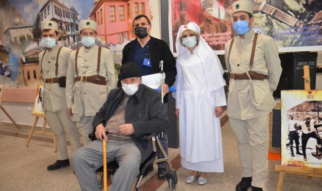 Afyonkarahisar Devlet Hastanesi'nde hastalar, Çanakkale Savaşı dönemindeki asker ve sıhhiye kıyafetleri ile karşılanırken, personelin menüsünde ise üzüm hoşafı, buğday çorbası ve ekmek vardı.