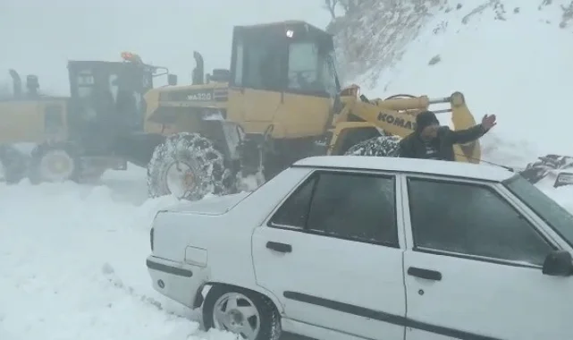 Kar kalınlığının 1 metreyi geçtiği Adıyaman'da, içerisinde hasta olan otomobile İl Özel İdare ekipleri 8 saatte ulaşabildi.