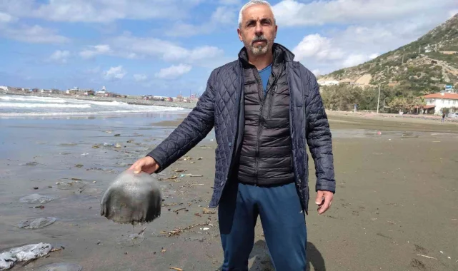 Hatay'ın Samandağ ilçesinde yüzlerce ölü denizanası sahile vurdu.
