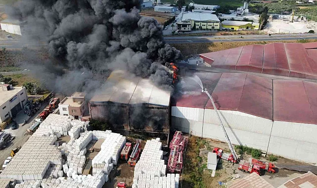 Antrepo çalışanlarının üzgün bakışları içerisinde izledikleri yangının çevredeki işletmelere sıçramaması için itfaiye yoğun çalışma yapıyor. Dron ile görüntülenen yangında plastik hammadde pamuk ve kereste dolu üç ayrı depoda yangın devam ediyor.