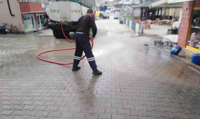DÜZCE(İHA) – Cumayeri ilçesinde cadde ve sokaklar baharın gelmesi ile birlikte su ile yıkandı.