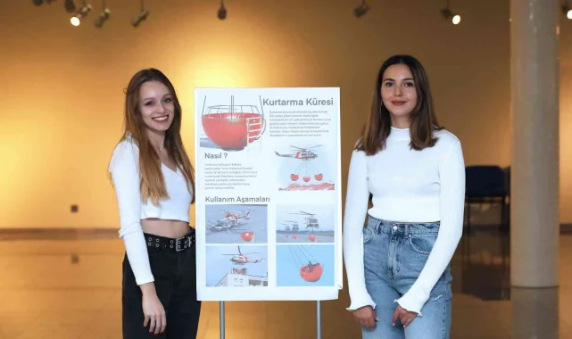 Elifnur Akdolan ve Zeynep Gönülalan, Endüstriyel Tasarım Bölümü Dr. Öğretim Görevlisi Ezgi Ozan Avcı'nın yürüttüğü Tasarım Yarışması Projeleri dersi kapsamında tasarladıkları ve kendilerine birincilik getiren projeyi anlattı. Öğrenciler, Kastamonu Bozkurt'taki sel felaketinde çatıda tek tek kurtarılmayı bekleyen aileyi televizyonda izledikten sonra böyle bir tasarım yapmaya karar verdiklerini belirterek, "Sel olduğu zamanlarda insanların evini su basınca genelde herkes evin çatısına kaçıyor. Bunun örneklerini son zamanlarda yaşanan sel baskınlarında da gördük. İnsanlar gruplar halinde çatılarda mahsur kalıyor ve kurtarma için helikopterler geliyor. Bu helikopterlerden profesyonel bir kişi aşağıya halatla iniyor ve sadece bir kişiyi kendine bağlayıp helikoptere çıkartabiliyor. Uzun bir sürede, sadece tek bir kişiyi kurtarılabiliyor. Bu süreyi kısaltacak ve bir seferde daha fazla insanın kurtarılmasını sağlayacak bir tasarım yapmak istedik. Tasarladığımız kurtarma küresi sayesinde, insanları gruplar halinde aynı anda kurtarmak ve sarsmadan taşıyabilmek mümkün olabilecek" dedi.