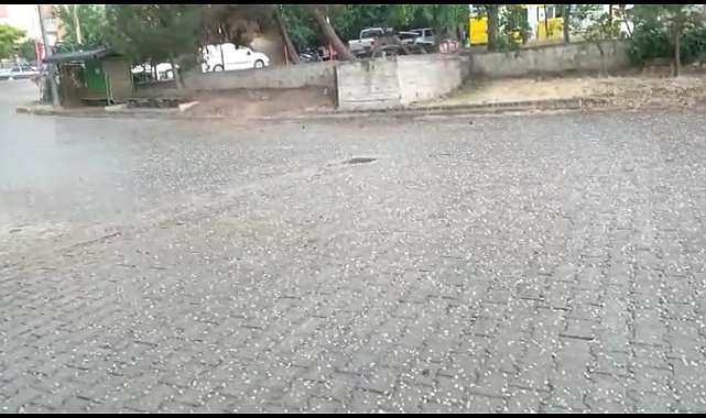 Eskişehir'de bazı mahallelerde etkili olan hortum panik oluştururken, Sarıcakaya ilçesine de dolu yağdı.