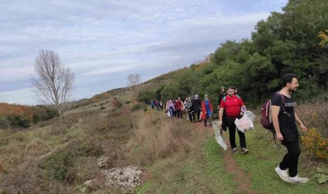Hem doğada yürüdüler hem de 35 kilo atık topladılar