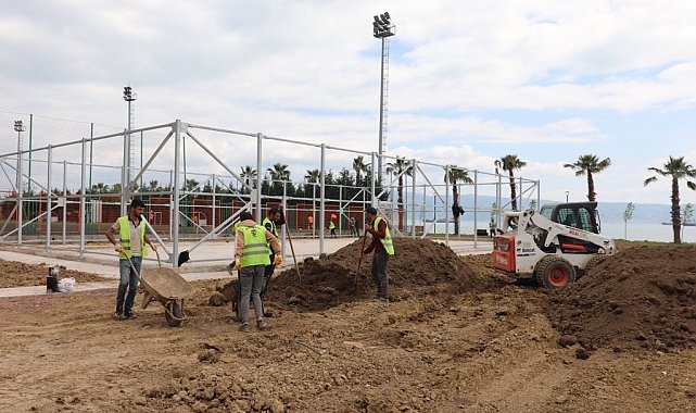 Hereke'de cazibe merkezi haline gelen sahil parkında kötü görüntüye yol açan halı sahanın kaldırılmasının ardından düzenleme çalışması yapılıyor.