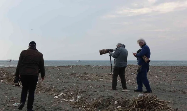 Hatay'ın Samandağ ilçesinde ilk kez görülen Çatal Kuyruklu Martıyı fotoğraflamak için vatandaşlar bir biriyle yarıştı.