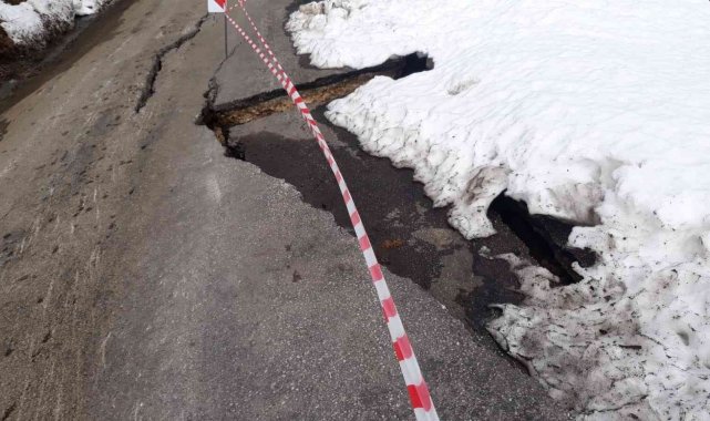 Heyelan sebebiyle köy yolunda göçükler oluştu