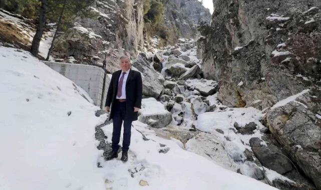 Dinana Çayı vadisinde kanalları ve suyun kaynak noktasında ki tesiste ekibi ile birlikte incelemelerde bulunan Belediye Başkanı Yüksel Kepenek; " Yeni tarımsal sulama sezonu öncesi hazırlıklarımız yoğun bir şekilde devam ediyor. Bağarası mevkiinde bu hafta 2 sondaj çalışmamızı başlattık. Buna ek olarak Dinana Çayı vadisindeki suyun da sorunsuz bir şekilde Bağarası Mevkiindeki arazilere ulaşması için, geçen sene yaptığımız tesislerde sert geçen kış mevsimi ve yoğun kar yağışı sonucu arızalar oluşmuştu. Bunların bakım ve tamiratı ile yeni beton kanal yapımları için çalışmalara başladık. Tüm teknik ekibimiz ve iş makineleri yardımıyla çalışmaları sürdürüyoruz. Dinana Çayı kaynağındaki temiz suyun bahçelerimize, kiraz, cennet elması ağaçlarımızla buluşturmak için gayret ediyoruz. Yaklaşık 1600 metre rakımdan çıkan kaynak suyunu borular ve beton kanallar yardımıyla Bağarası damla sulama sistemlerine ileteceğiz" dedi.
