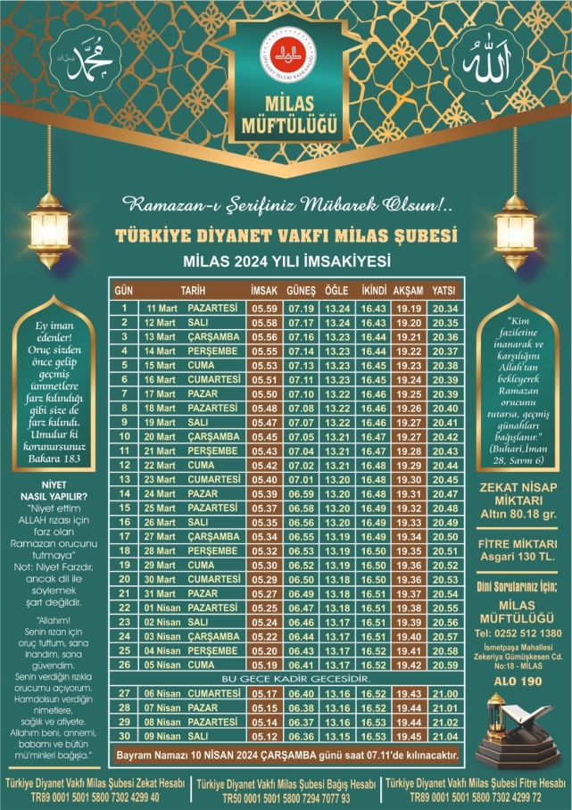 Bu vesileyle güzel Milasımızın, ülkemizin ve İslam aleminin Ramazân-ı Şerif’ini tebrik eder ve tüm insanlık için huzur, barış ve esenlik getirmesini Yüce Rabbimizden niyaz ederiz.