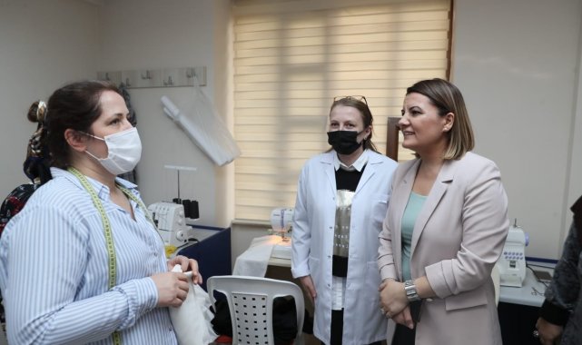 İzmit Belediye Başkanı Fatma Kaplan Hürriyet, İZMEK iğne oyası ve mefruşat kurslarında üretim yapan kadınları ziyaret etti.