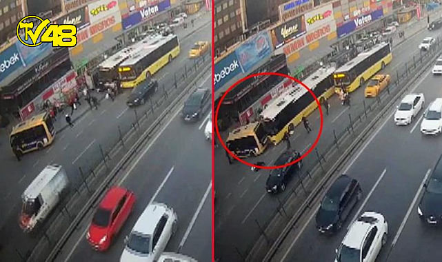 Kaza anı güvenlik kamerasına saniye saniye yansıdı. Görüntülerde, gelen otobüsün durmayarak durağa girdiği ve minibüse çarparak durduğu görülüyor.