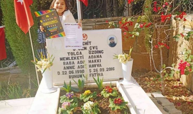 Şırnak-Van karayolu üzerinde 6 yıl önce PKK'lı teröristler ile çıkan çatışmada şehit olan Jandarma Uzman Çavuş Tolga Özdinç'in hiç görmediği kızı, ilk karnesini alır almaz babasının mezarına götürdü.