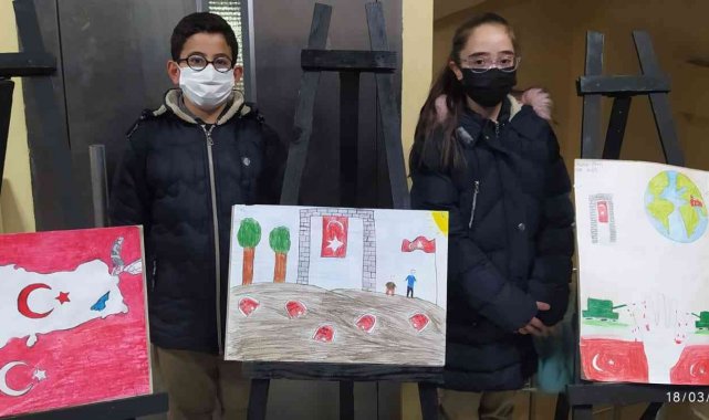 Sivas'ın Gürün İlçesinde ilkokul öğrencileri 18 Mart temalı resim sergisi açtı.
