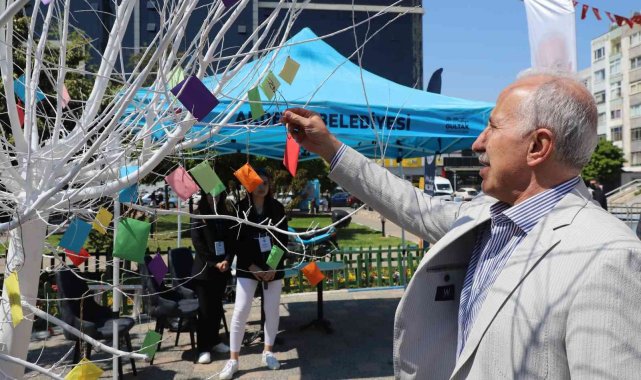 Mersin'in merkez ilçe Akdeniz Belediyesinin, Mersin Barosu ile ortak düzenlediği 'Dilek Ağacı' etkinliği renkli görüntülere sahne oldu. Akdeniz Belediyesi Kültür ve Sosyal İşler Müdürlüğünce gerçekleştirilen etkinlik, aynı anda hem belediye binası önünde hem de Mersin Barosunda organize edildi.