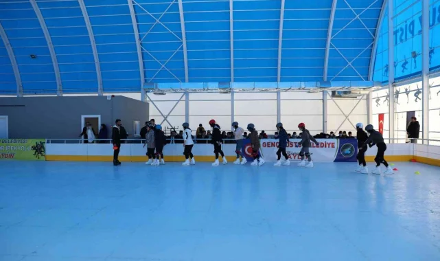 Van'ın İpekyolu Belediyesi, okulların tatil olmasını fırsat bilerek çocuk ve gençleri buz pistinde ağırlıyor.