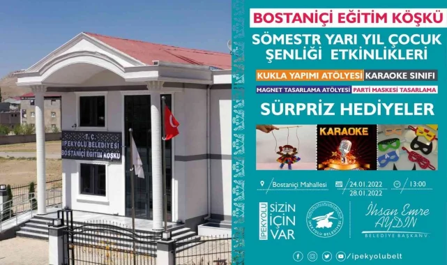 Yine Bostaniçi Eğitim Köşkü'nde 24-28 Ocak tarihleri aralığında hafta içi her gün saat 13.00'de başlayacak şenliklerde çocuklara kukla yapımı, magnet tasarlama, parti maskesi tasarlama ve karaoke gibi eğlendirici hizmetlerin sunulacağı dile getirilirken, katılım sağlayan tüm öğrencilere sürpriz hediyelerin verileceği belirtildi.