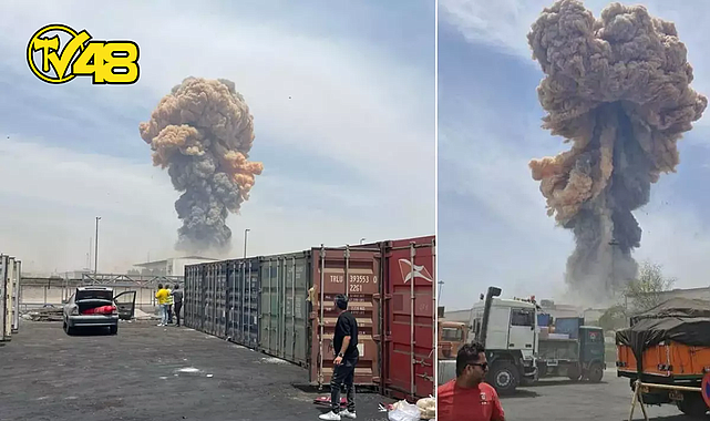 Yayınlanan görüntülerde limandan duman yükseldiği daha sonra şiddetli bir patlama meydana geldiği görülüyor.
