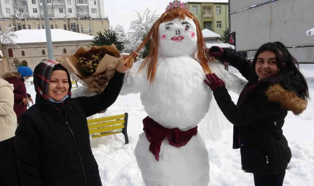 Isparta'da esnaf kardan gelin yaptı, vatandaş fotoğraf için sıraya girdi