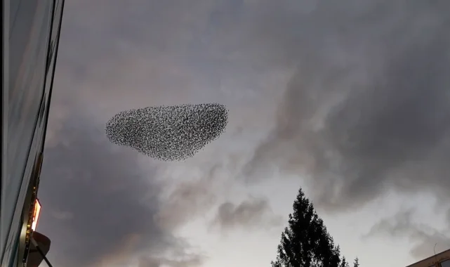 Isparta kent merkezinde akşam saatlerinde kuşların havada sürü halinde yaptığı senkronize uçuş görenleri hayran bıraktı.