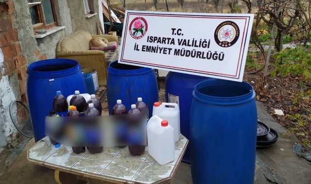 Isparta'da bir eve yapılan operasyonda 450 litre sahte içki ele geçirilirken, sahte içki imalatı ve fuhuş suçlarından gözaltına alınan 2 kişi tutuklandı.