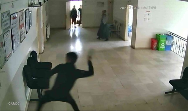 Öte yandan satırlı şahsın sağlık ocağında paniğe neden olduğu anlar güvenlik kamerasına yansıdı. Görüntülerde şahıs elindeki satırla duvara ve duvardaki panolara vuruyor, ardından satırı yere fırlatıyor. Olaya tanık olan doktor ve çalışanlar kendilerini korumak için odaya saklanıyor.