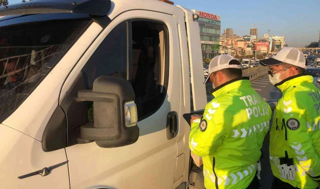 İstanbul'da plakasız çekici denetimden kaçamadı