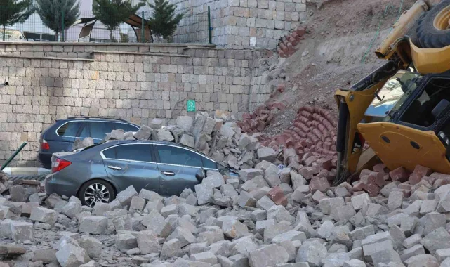 Edinilen bilgiye göre, ilçeye bağlı Mevlana Mahallesi Anayurt Caddesi üzerinde çalışan bir iş makinesi, istinat duvarının çökmesi sonucu yaklaşık 5 metre aşağı düştü. İş makinesi operatörü devrilen araçtan kendi imkanlarıyla çıkarken, olay yerine polis ve sağlık ekipleri sevk edildi. Çöken duvarın altında kalan park halindeki 38 US 267, 33 DSY 55, 50 SG 272, 34 CBN 437 plakalı otomobillerde büyük çapta maddi hasar oluştu. Olayı anlatan araç sahibi, "Bir anda hiç anlamadık. 2 dakikanın içerisinde araç düştü. Biz kepçeciye bir şey oldu zannettik. Toprak kaymış. Aşırı gürültüyle çıktık" dedi. Polis, olay yerinde inceleme yaptı.