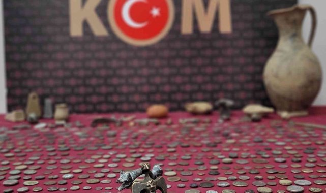 İzmir İl Emniyet Müdürlüğü Kaçakçılık ve Organize Suçlarla Mücadele (KOM) Şube Müdürlüğü ekipleri, Karabağlar ilçesinde tarihi eser bulunduğu bilgisi üzerine çalışma başlattı. Olayla ilgili 2 şüpheli takibe alan ekipler, 2 Mart günü belirlenen iş yeri ve araçta arama yaptı. Yapılan aramada, Arkaik, Roma Bizans Helenistik ve İslami dönemlere ait olduğu değerlendirilen, 538 adet gümüş ve bronz sikke, 45 adet obje, 23 adet metal yüzük, ok ucu ve ağırlık, 5 adet pişmiş toprak kandil, vazo ve minyatür kap, 1 adet mermer obje ve 1 adet insan yüzü tasvirli metal obje olmak üzere toplam 631 adet tarihi eser ele geçirildi.