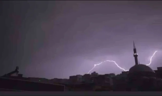 İzmir'de etkili olan gök gürültülü sağanak yağış hayatı olumsuz etkilerken, çakan şimşekler ise görsel şölen oluşturdu.