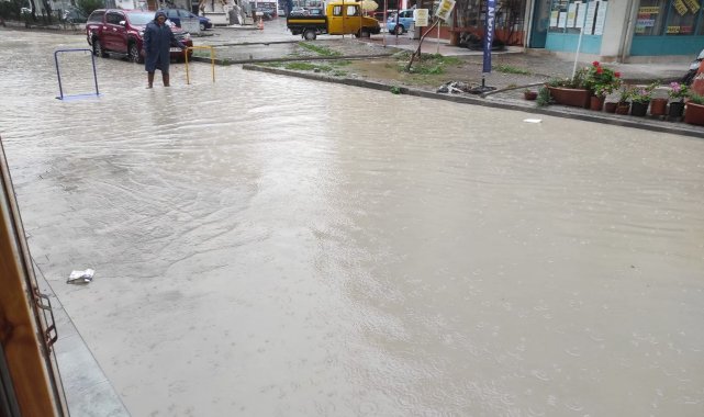İzmir'de öğlen saatlerinden itibaren etkili olan sağanak yağış, kent merkezi ve ilçelerde su birikintilerine sebep oldu. Bazı bölgelerde yolların adeta göle döndüğü görüldü.