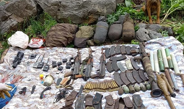 Siirt İl Jandarma Komutanlığı ekipleri, kayalıklar arasında bir bidon içerisinde çok sayıda silah ve mühimmat ele geçirdi.